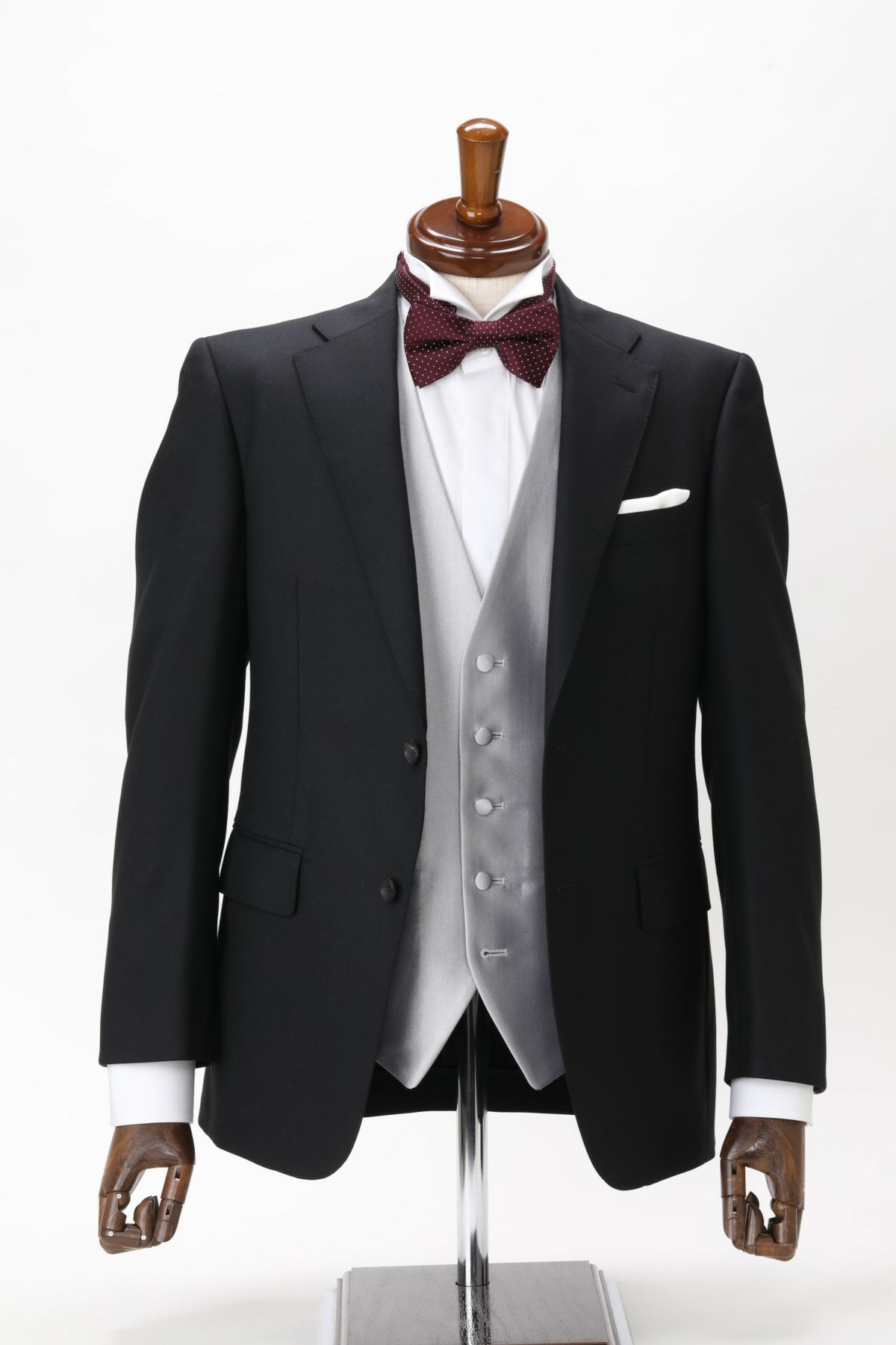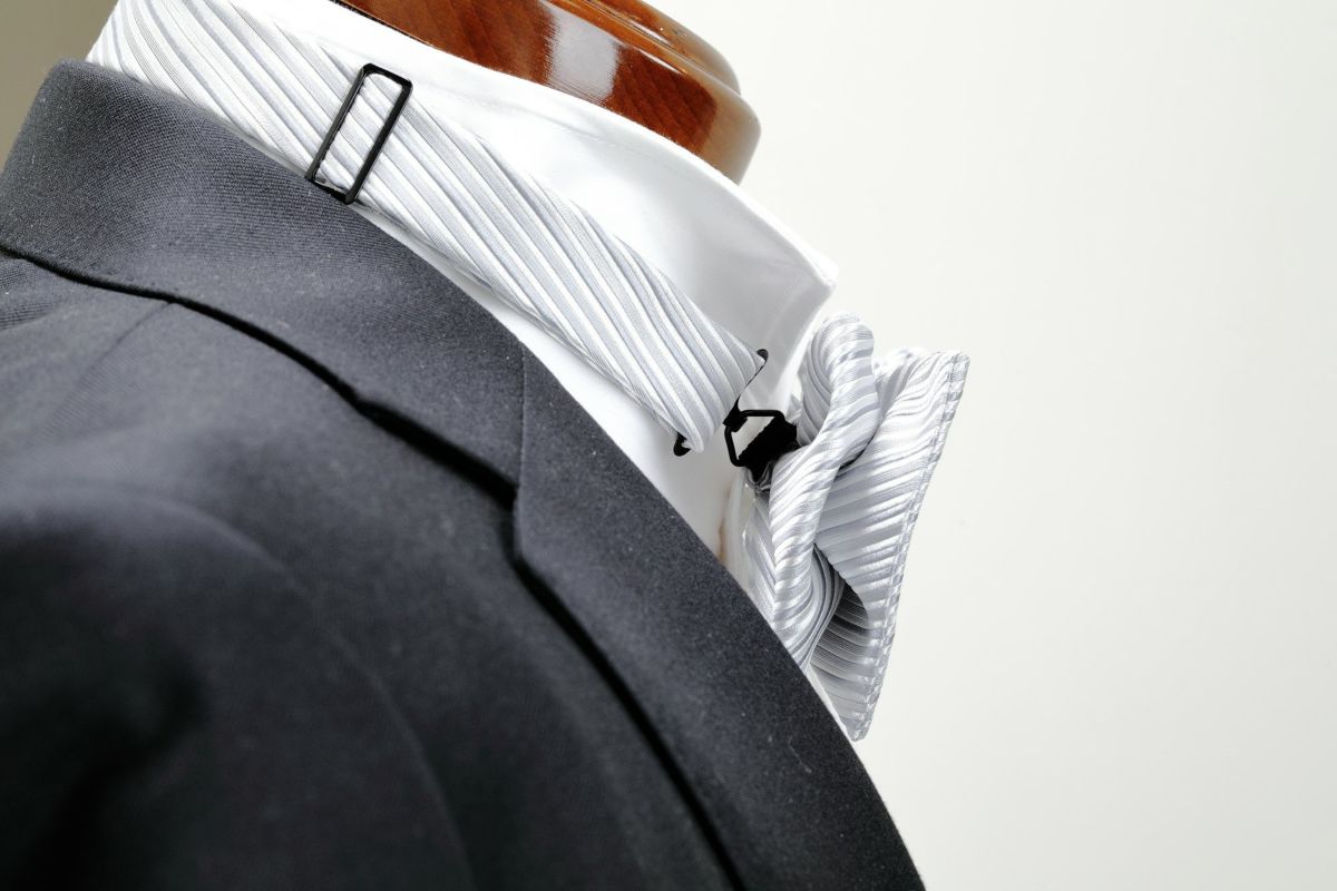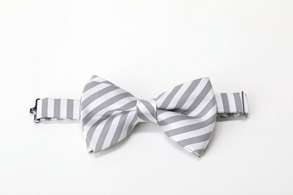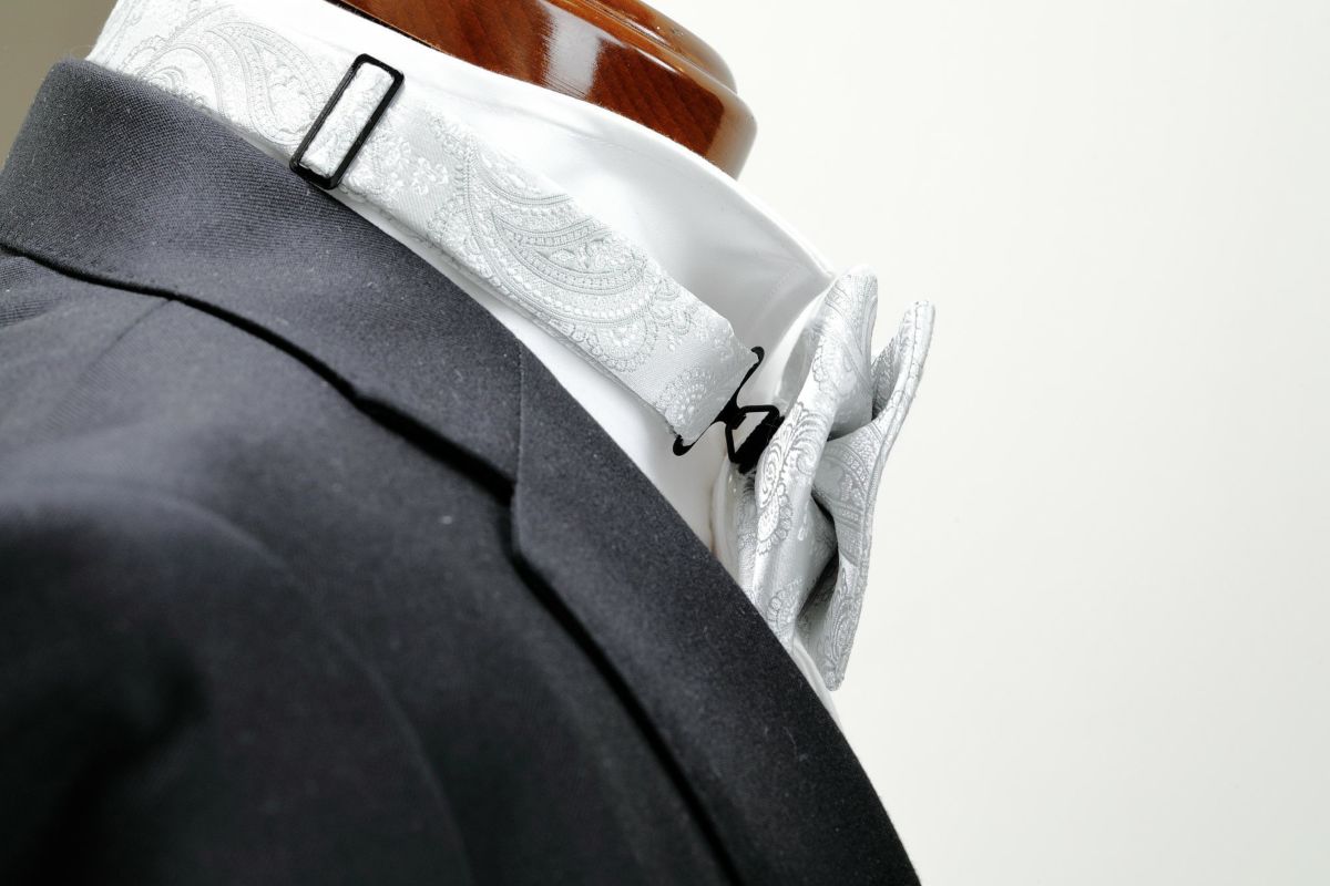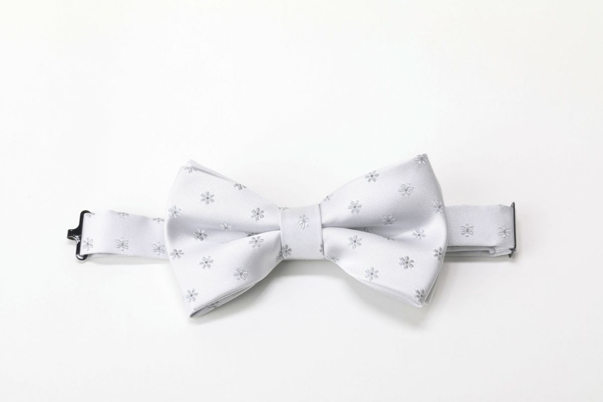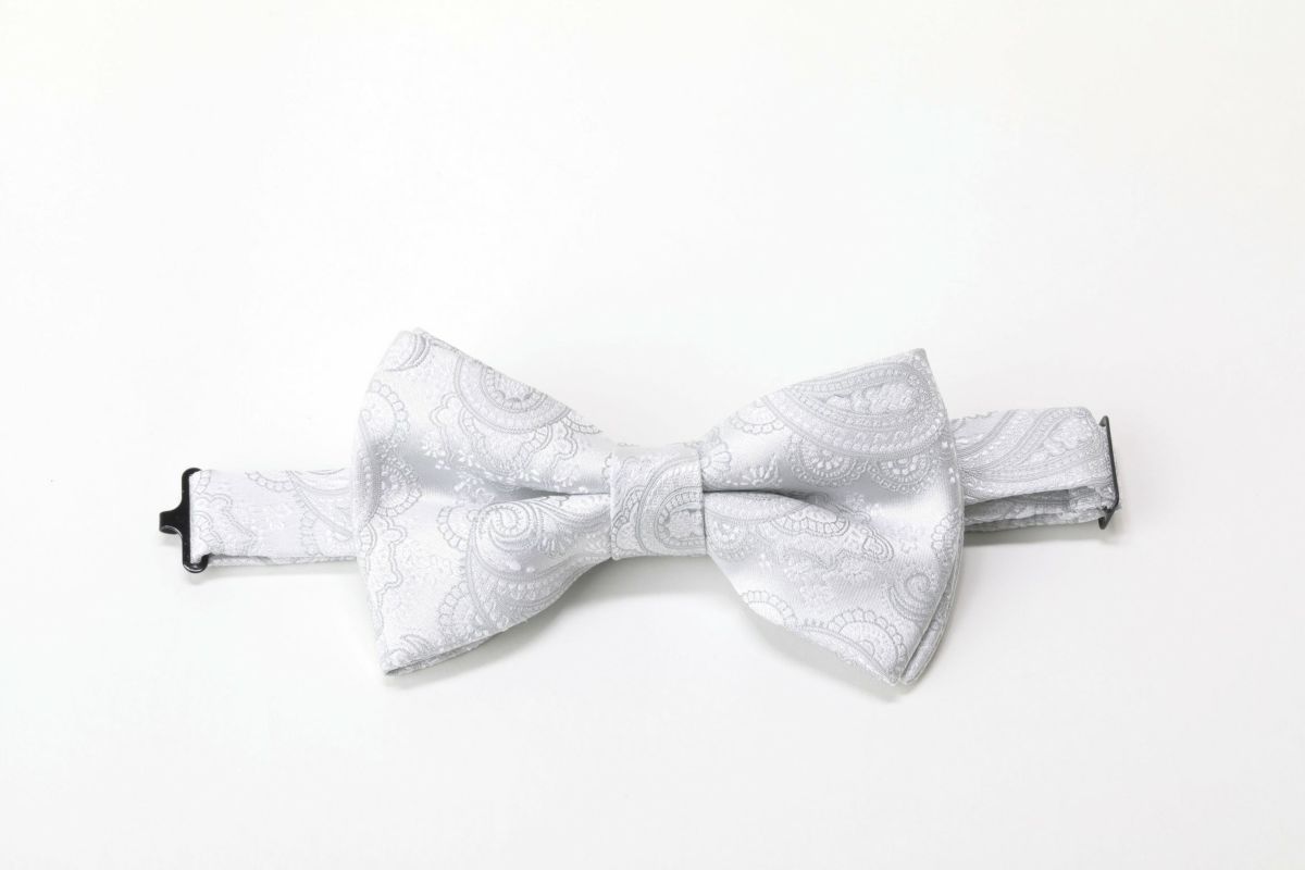 シルバーペイズリー 蝶ネクタイ シルク100%